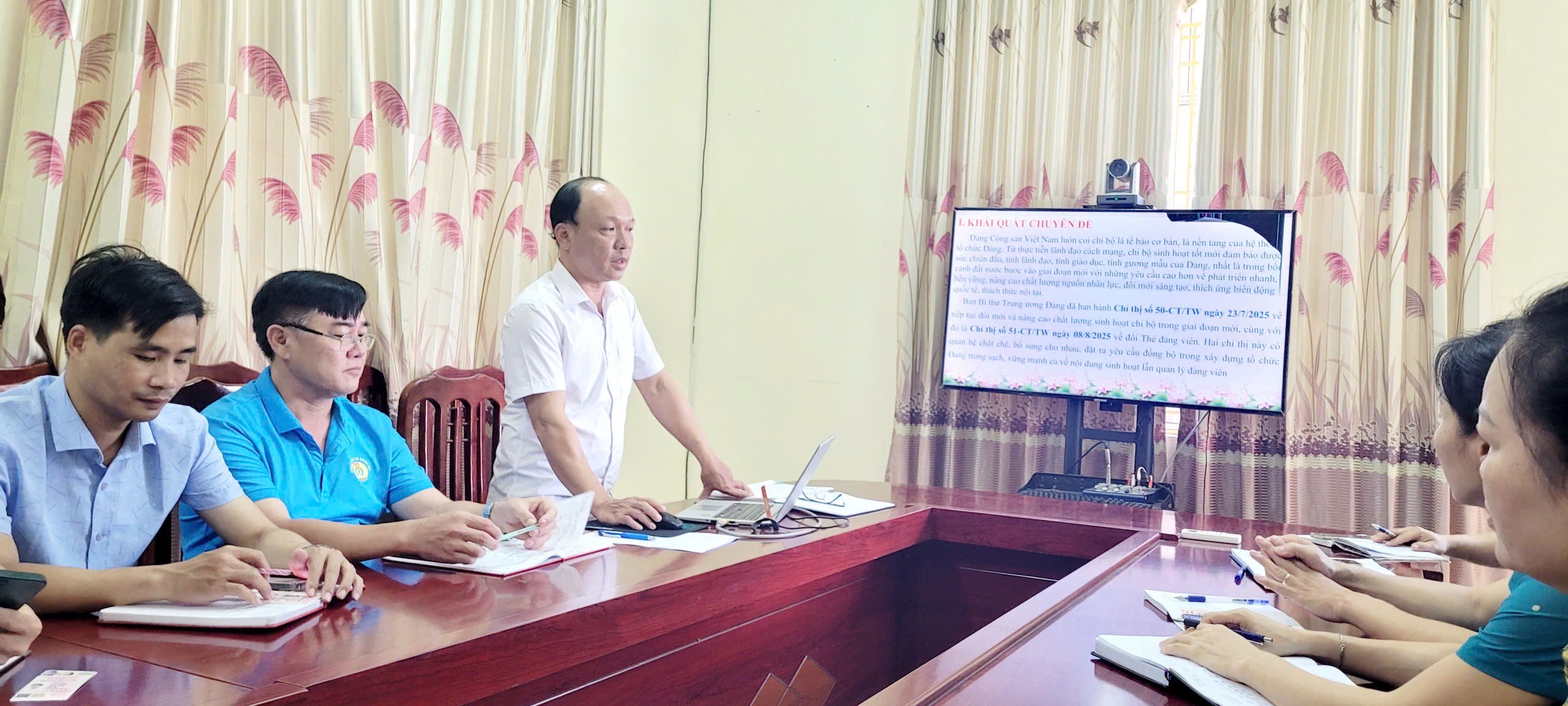Theo Chỉ thị 50-CT/TW ngày 23/7/2025 của Ban Bí thư về tiếp tục đổi mới và nâng cao chất lượng sinh hoạt chi bộ trong giai đoạn mới; Chỉ thị 51-CT/TW ngày 08/8/2025 của Ban Bí thư về đổi Thẻ đảng viên. Các chỉ thị, kết luận trước đó như Chỉ thị số 10-CT/TW (2007), Kết luận 18-KL/TW (2017) về thực hiện Chỉ thị 10, các nghị quyết, kết luận Trung ương về xây dựng, chỉnh đốn Đảng. Chỉ thị 50 tiếp tục kế thừa, phát triển.