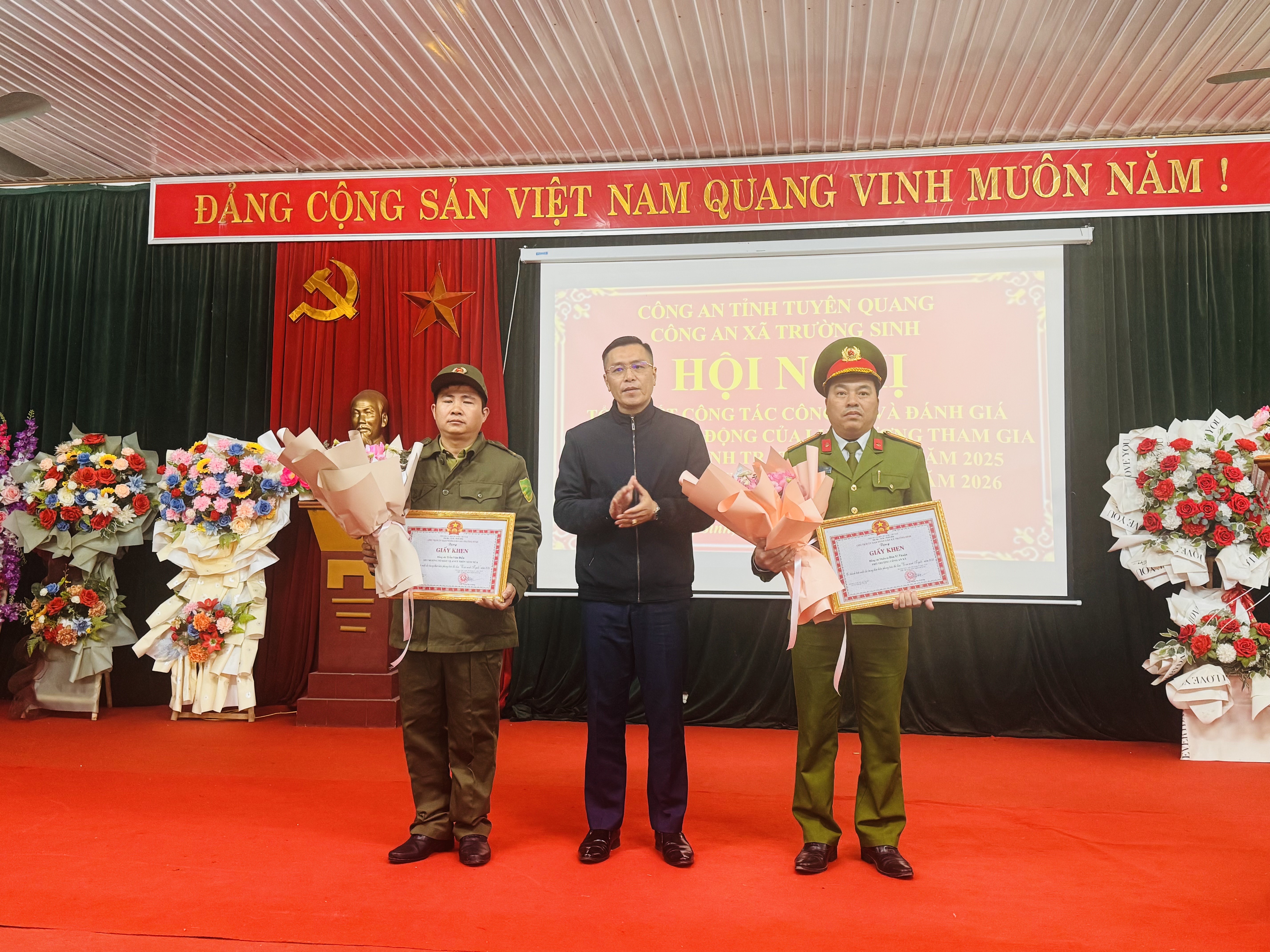 Tại hội nghị các đồng chí Lãnh đạo tỉnh, lãnh đạo xã tặng khen thưởng cho các đồng chí hoàn thành xuất sắc nhiệm vụ trong năm 2025