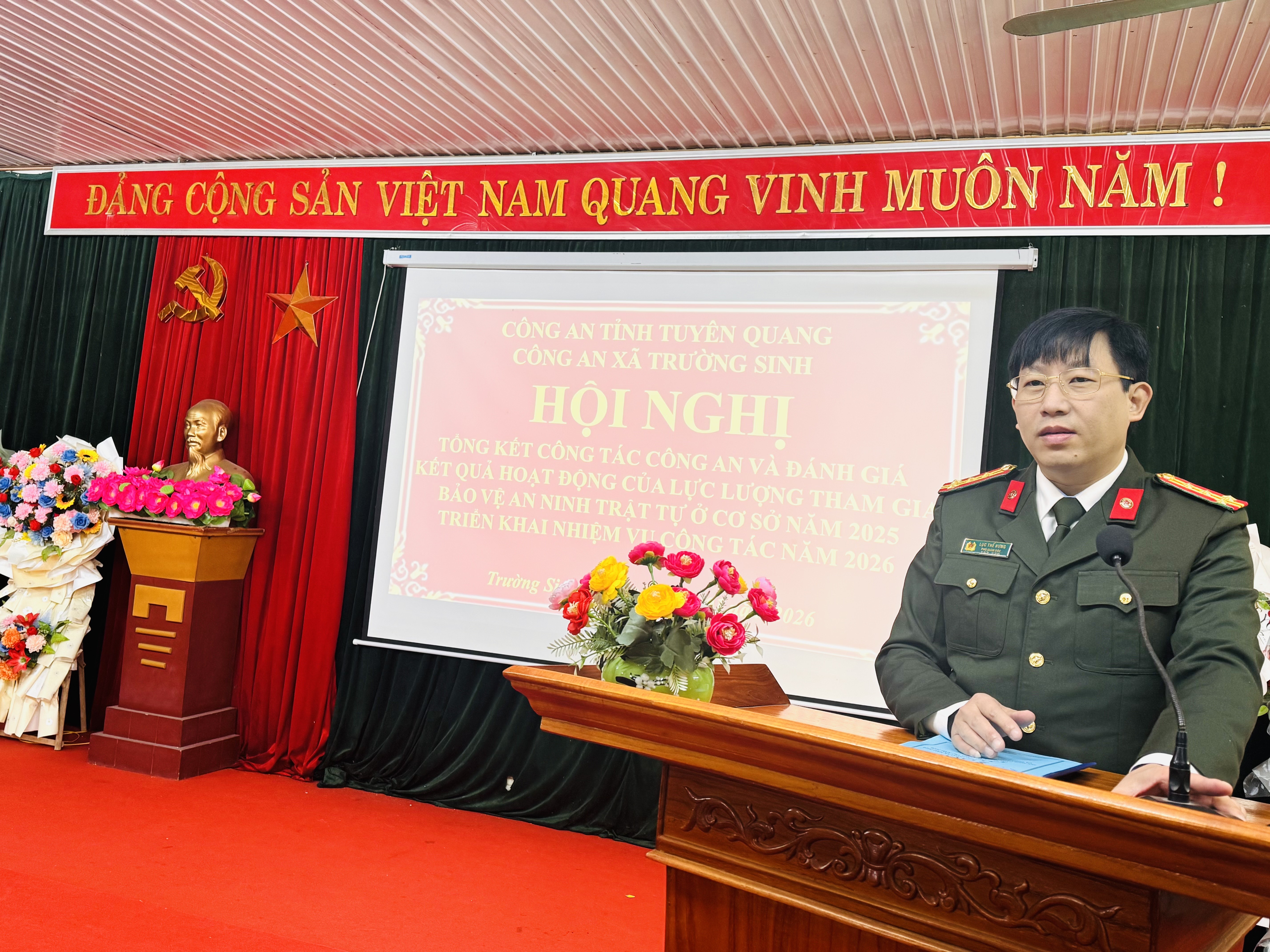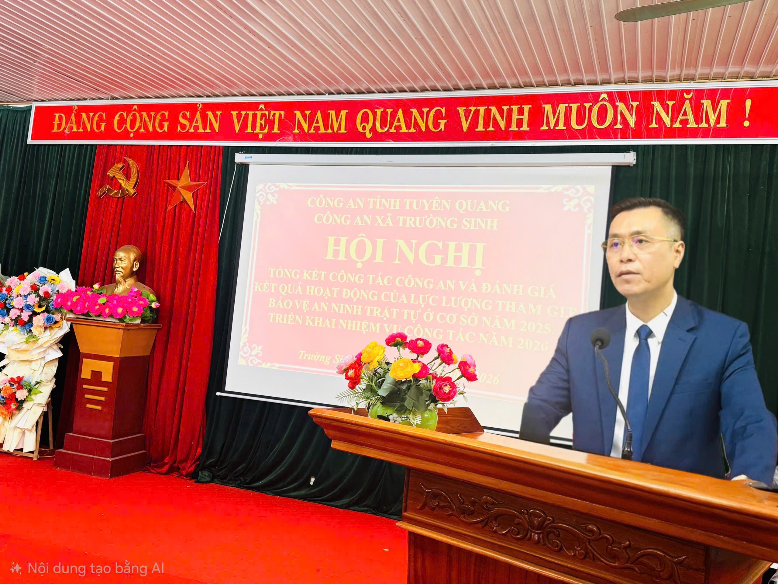Thực hiện Kết luận của đồng chí Giám đốc Công an tỉnh Tuyên Quang tại Hội nghị tổng kết công tác Công an năm 2025, triển khai công tác Công an năm 2026. Sáng ngày 07/1/2026 tại hội trường Nhà văn hóa xã công an xã Trường Sinh đã tổ chức Hội nghị tổng kết công tác Công an năm 2025, triển khai Chương trình công tác năm 2026