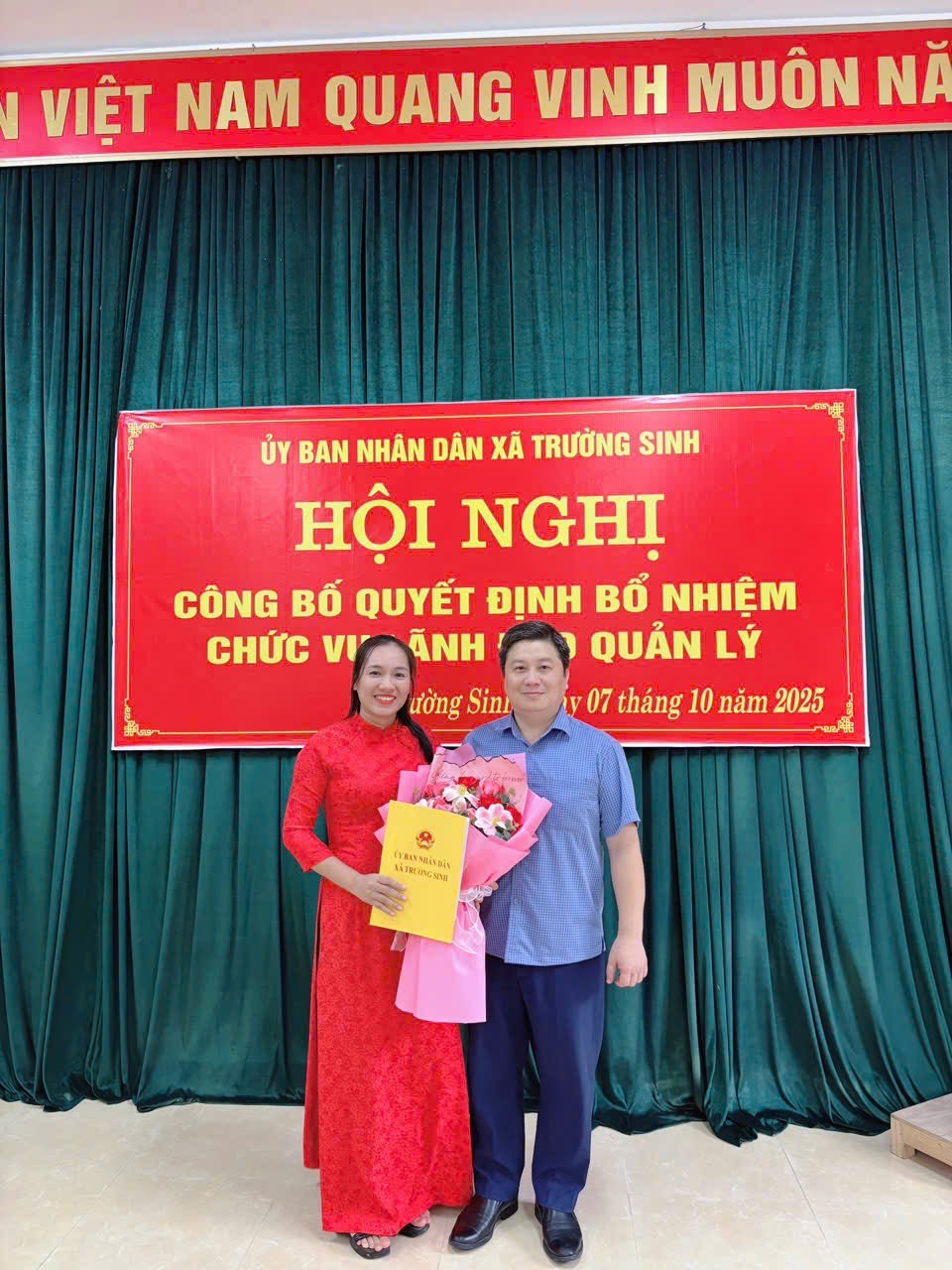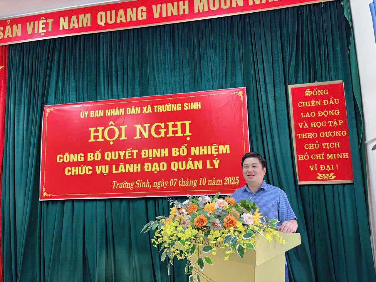 Thực hiện Nghị quyết số 04-NQ/ĐU ngày 27/9/2025 của Ban Thường vụ Đảng ủy xã Trường Sinh về công tác cán bộ; Quyết định số 464/QĐ-UBND ngày 06/10/2025 của Uỷ ban nhân dân xã Trường Sinh về việc bổ nhiệm viên chức giữ chức vụ lãnh đạo, quản lý. Chiều ngày 07/10/2025 Ủy ban nhân dân xã Trường Sinh tổ chức Hội nghị công bố Quyết định bổ nhiệm cán bộ lãnh đạo Trường THCS Hào Phú.