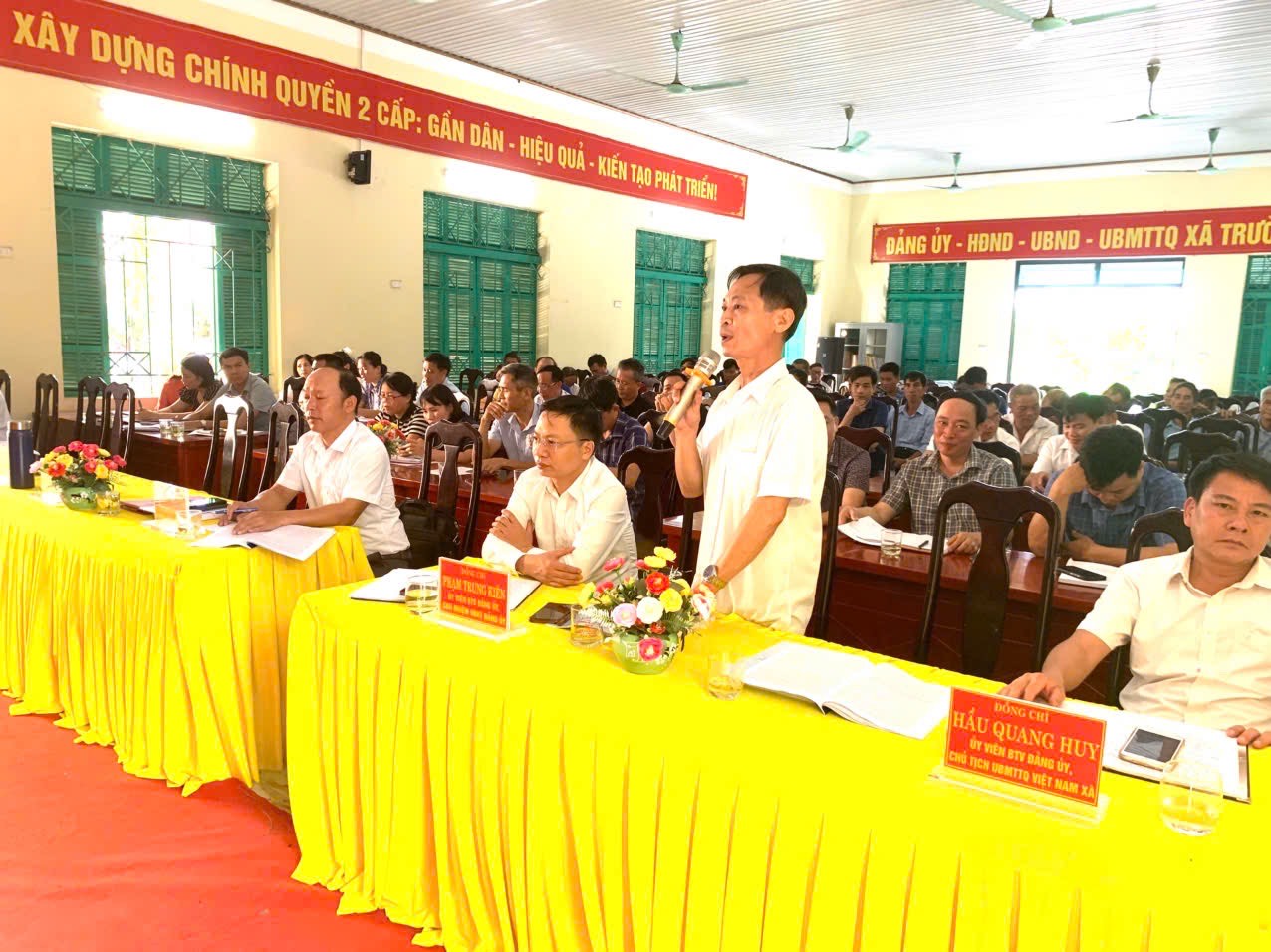 Đ/c Trần Trọng Phi Trường, Phó Bí Thư Đảng Ủy, Chủ tịch HĐND xã cùng chủ trì hội nghị