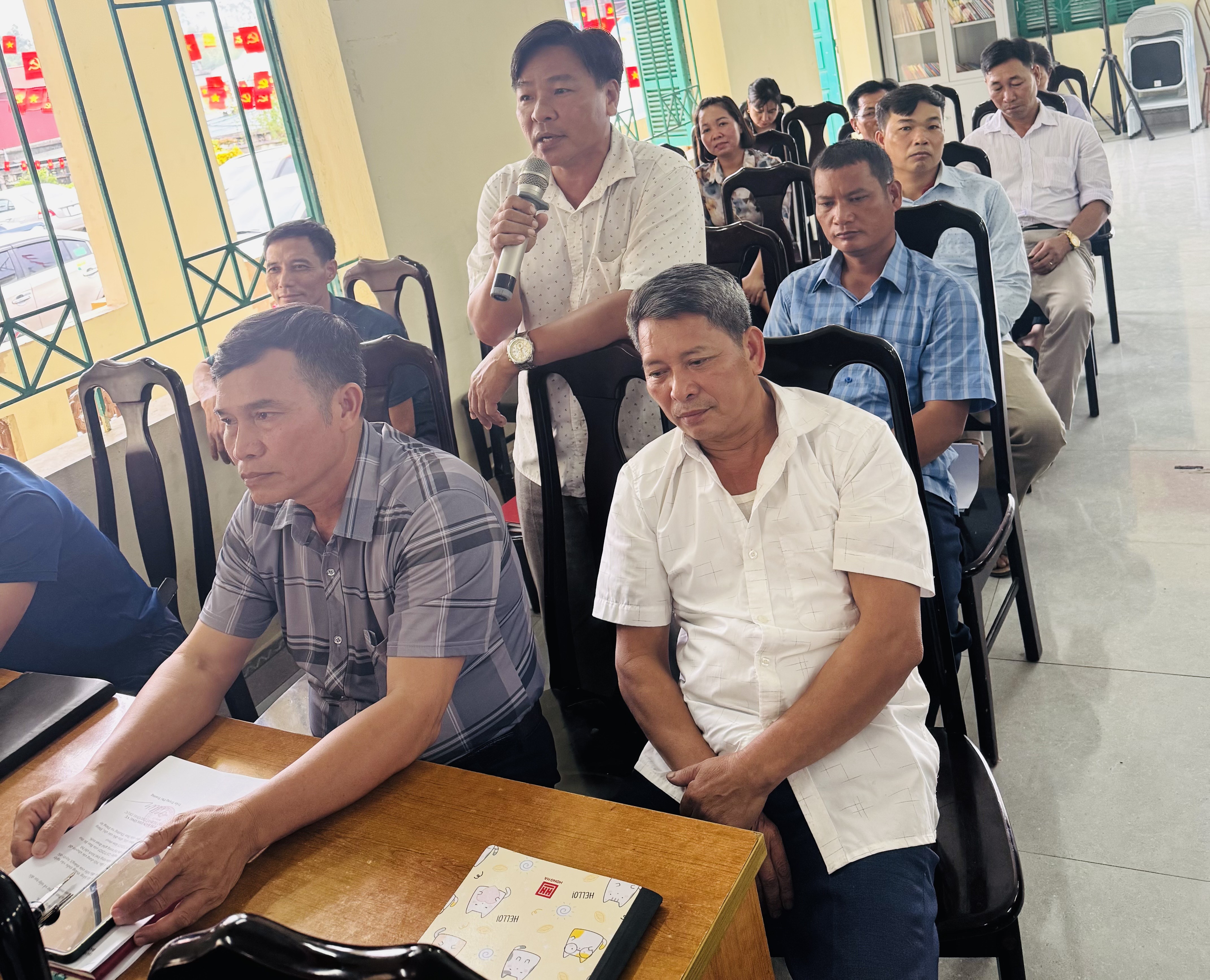 Đ/c Chí Trần Văn Hùng, Bí thư chi bộ, Trưởng thôn Nhà Xe phát biểu thảo luận tại Hội nghị