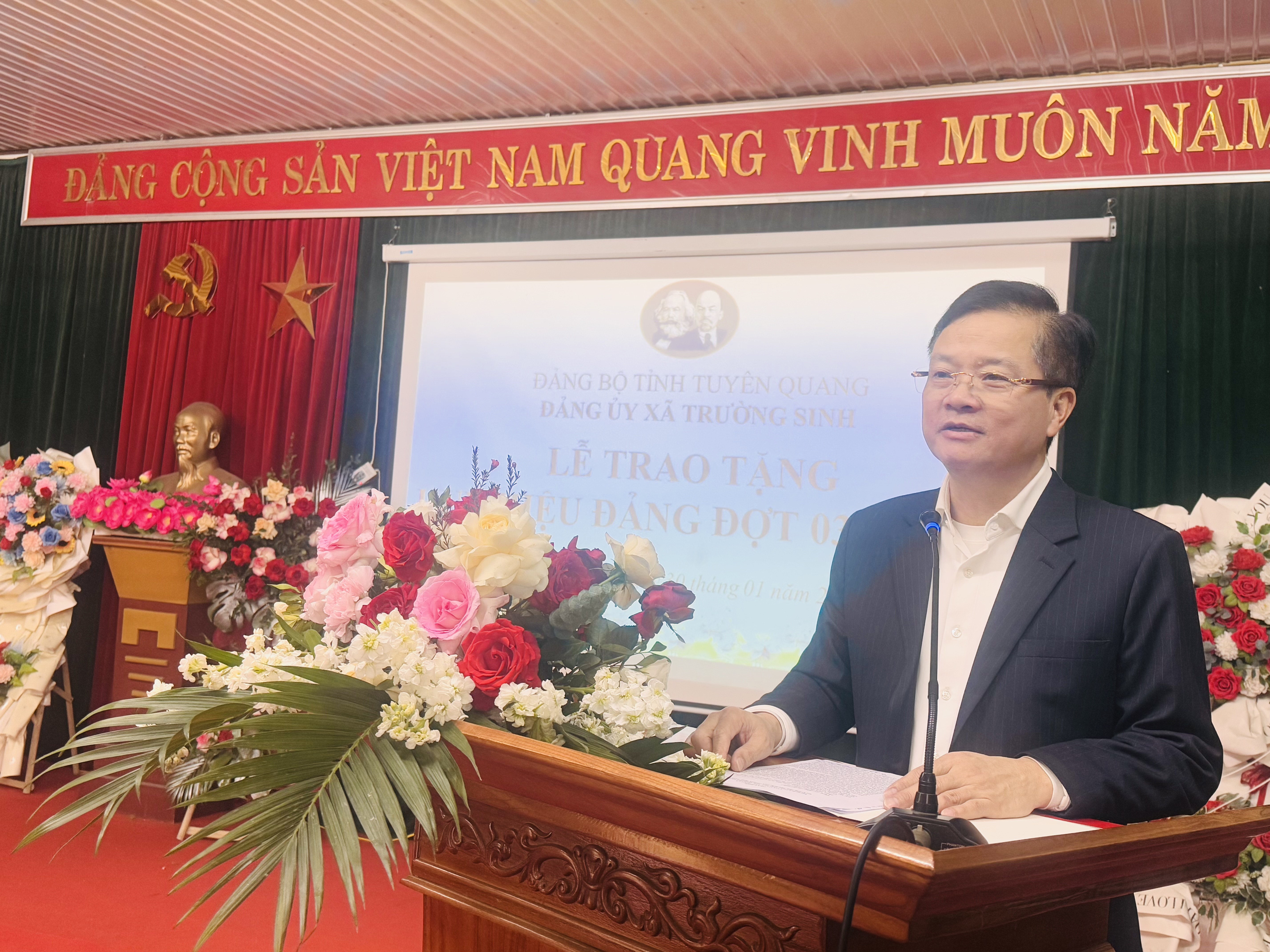 phát biểu và trao tặng Huy hiệu Đảng cho các Đảng viên 65, 60 tuổi Đảng