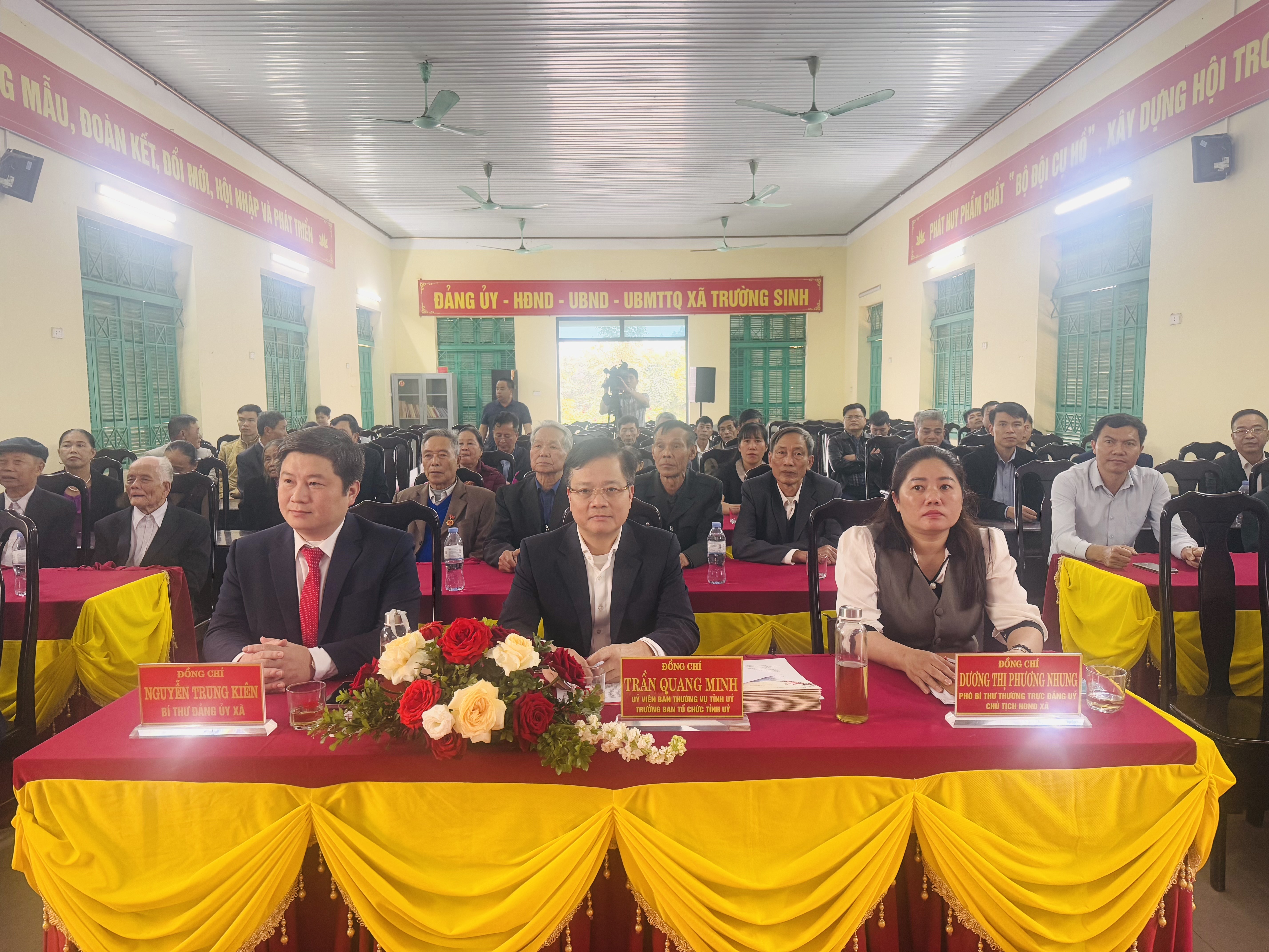 Đ/c Trần Quang Minh Ủy viên Ban Thường vụ tỉnh ủy, Trưởng ban Tổ chức Tỉnh ủy; đ/c Nguyễn Trung Kiên, Bí thư Đảng ủy xã; đ/c Dương Thị Phương Nhung, Phó Bí thư Thường trực Đảng ủy, Chủ tịch HĐND xã cùng câc Đại biểu dự buổi Lễ