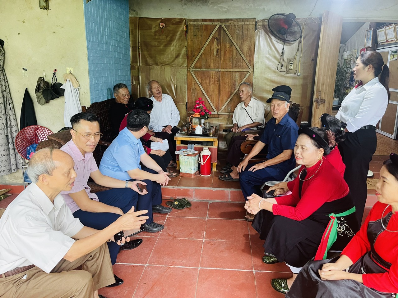 Nhân dịp này Đoàn công tác xuống thăm và giao lưu hoạt động văn hóa văn nghệ với Câu lạc bộ giữ gìn bản sắc văn hóa dân tộc Cao Lan thôn Xóm Nứa, xã Trường Sinh