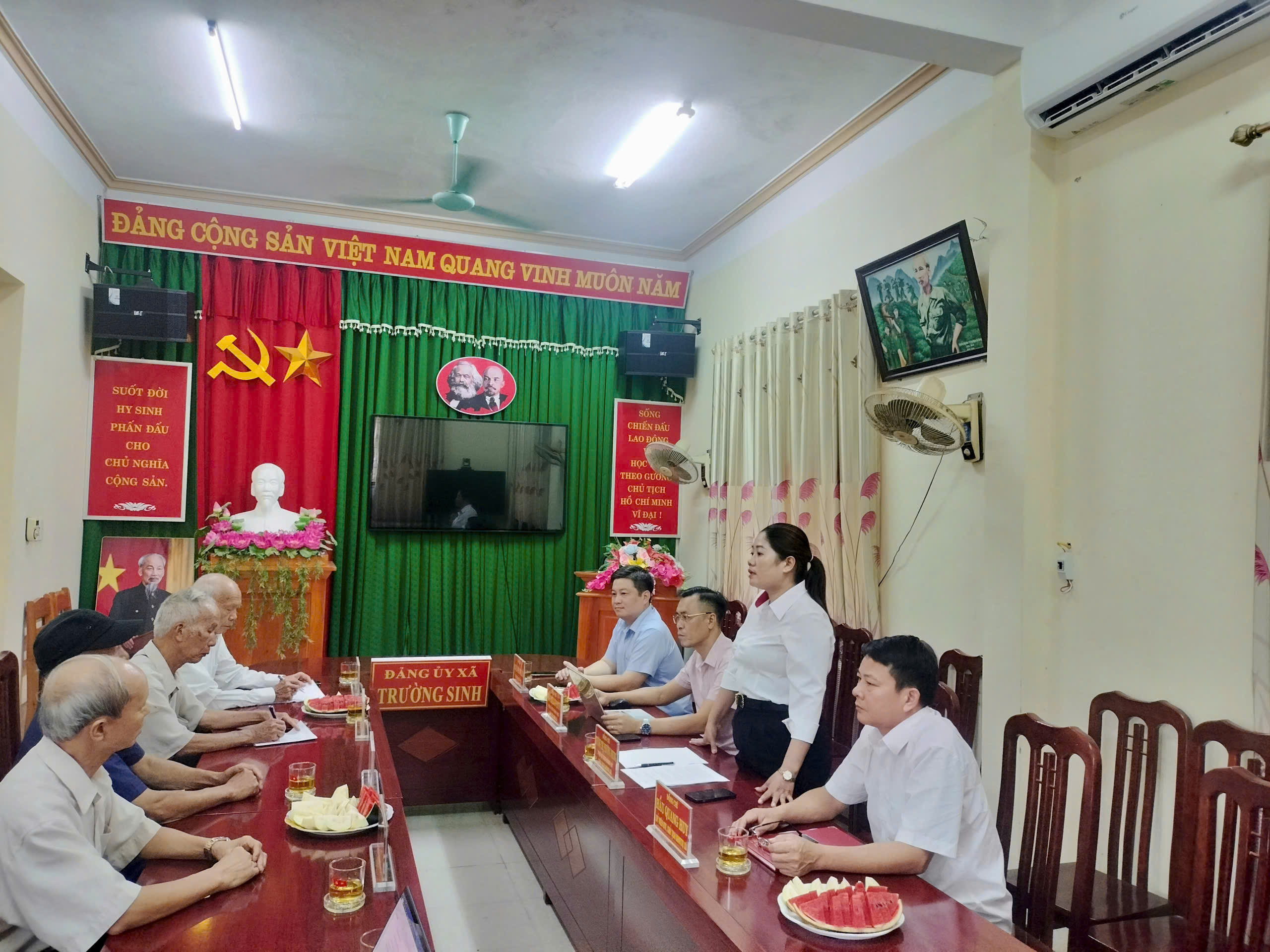 Sáng ngày (25-9) Đoàn công tác các đồng chí nguyên lãnh đạo tỉnh thăm và làm việc tại xã Trường Sinh, có các Đ/c Triệu Đức Thanh, nguyên Phó Bí thư Tỉnh ủy, nguyên Chủ tịch UBND tỉnh Hà Giang (trước hợp nhất), Đ/c Lê Quang Đôn, nguyên Ủy viên BTV Tỉnh ủy, nguyên Phó Chủ tịch UBND tỉnh Tuyên Quang (trước hợp nhất), Đ/c Phượng Quầy Phin, nguyên TUV, nguyên Chủ tịch Ủy ban Mặt trận tổ quốc Việt Nam tỉnh Hà Giang (trước hợp nhất), Đồng chí Bàn Xuân Triều, nguyên Chủ tịch Ủy ban Mặt trận tổ quốc Việt Nam tỉnh Tuyên Quang (trước hợp nhất). Về phía xã Trường Sinh có các Đ/c Nguyễn Trung Kiên, Bí thư Đảng ủy xã, Đ/c Trần Trọng Phi Trường, Phó Bí thư Thường trực Đảng ủy, Chủ tịch HĐND xã, Đ/c Dương Thị Phương Nhung, Phó bí thư Đảng ủy, Chủ tịch UBND xã, cùng các Đ/c trong Ban Thường vụ Đảng ủy xã, Thường trực HĐND, lãnh đạo các cơ quan ban Đảng, phòng chuyên môn UBND xã.