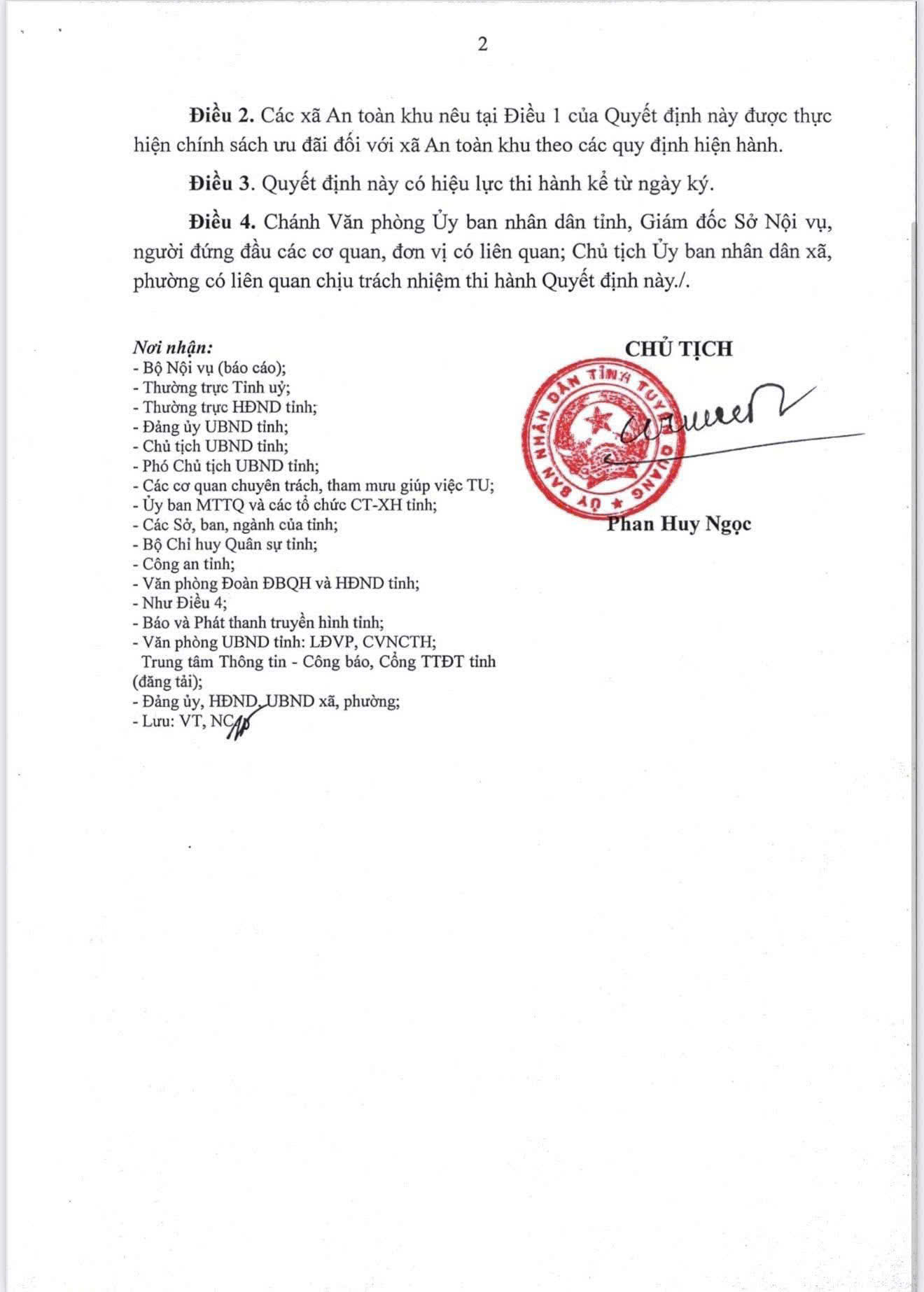 Quyết định công nhận 24 đơn vị hành chính cấp xã trên địa bàn tỉnh Tuyên Quang sau sắp xếp đơn vị hành chính là xã An toàn khu trong thời kỳ kháng chiến chống Pháp và chống Mỹ, bao gồm:
