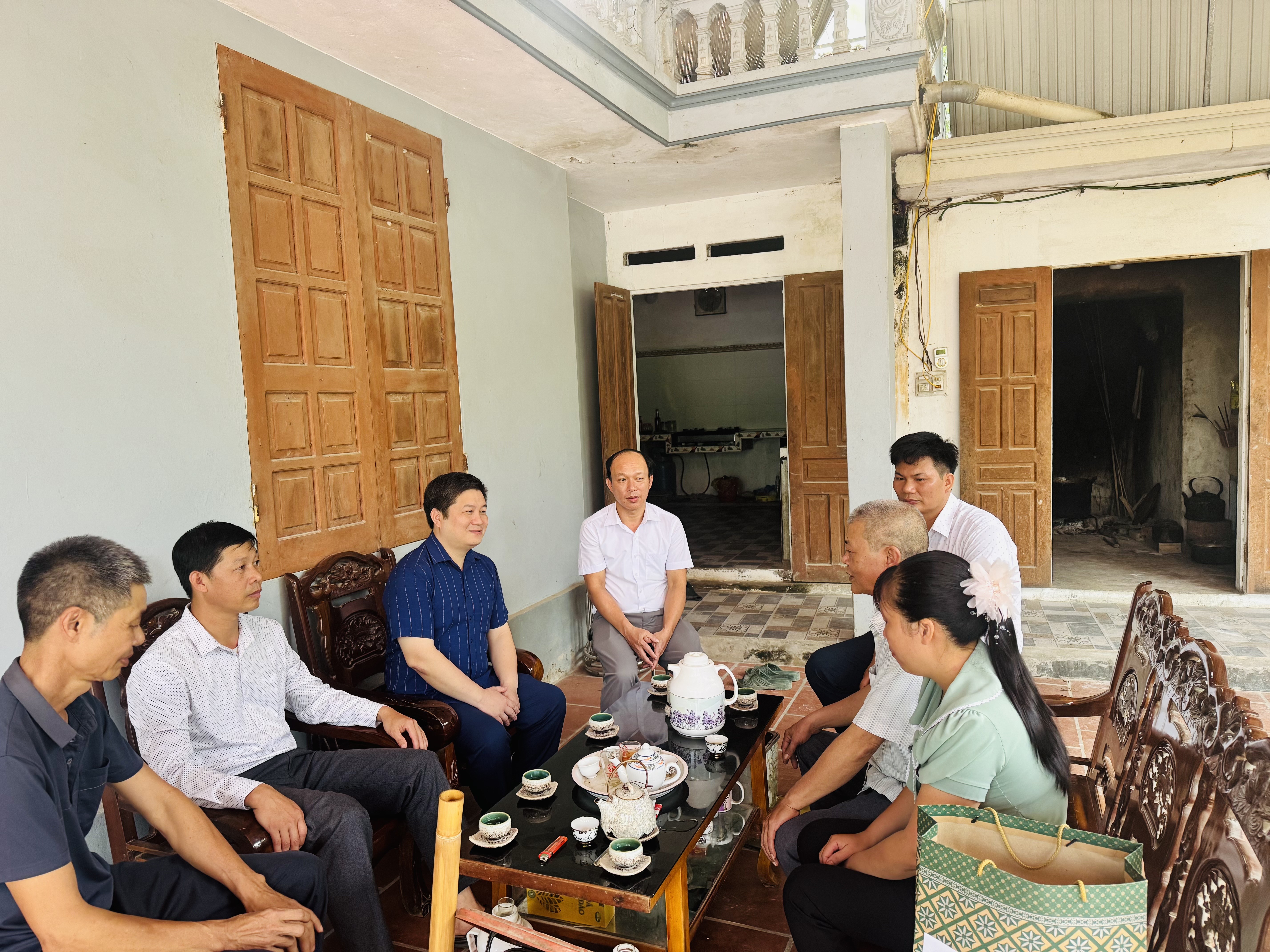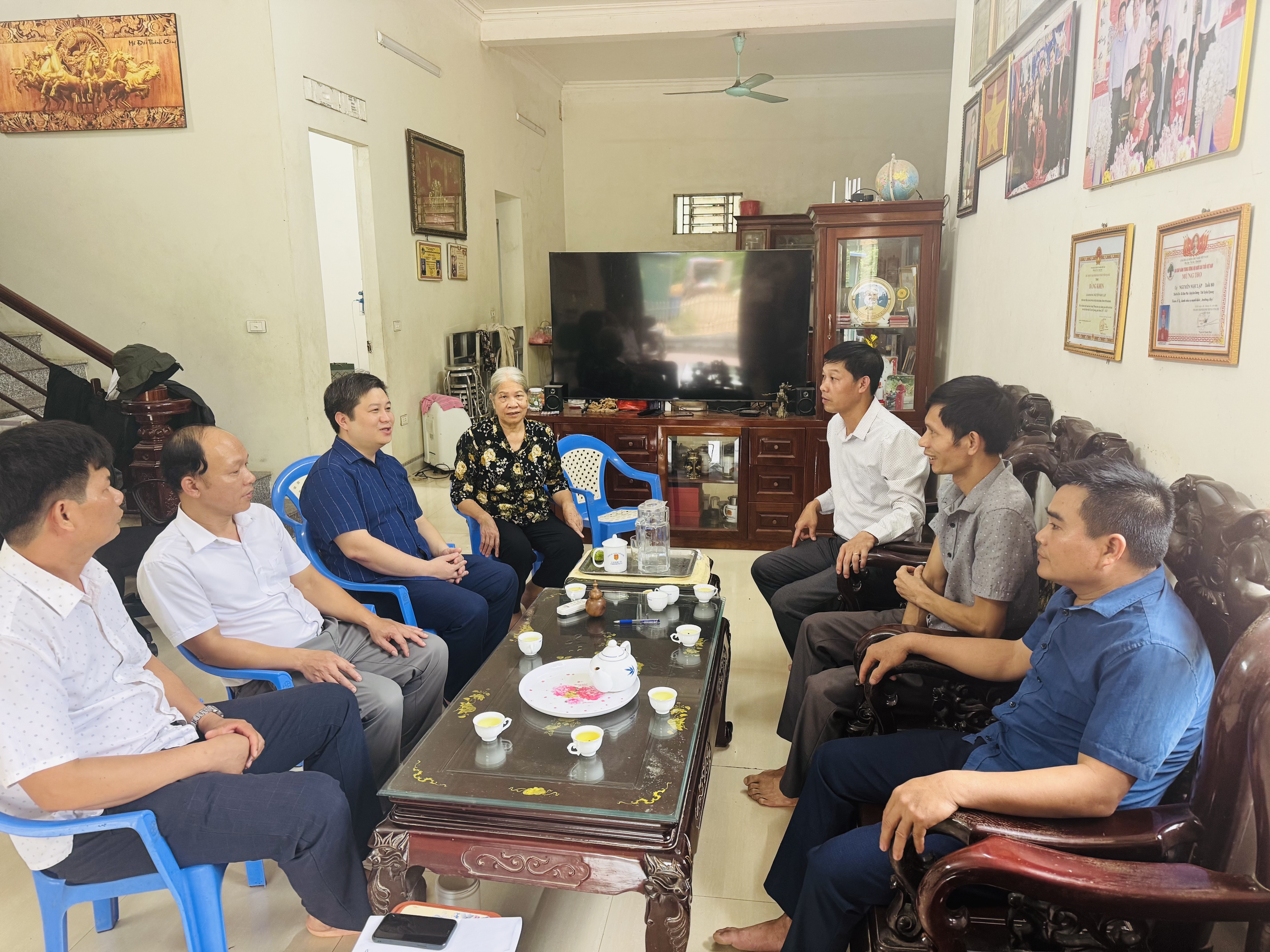 Đ/c Nguyễn Trung Kiên, Bí thư Đảng ủy, Chủ tịch UBND cùng các đồng chí cán bộ xã thăm hỏi,