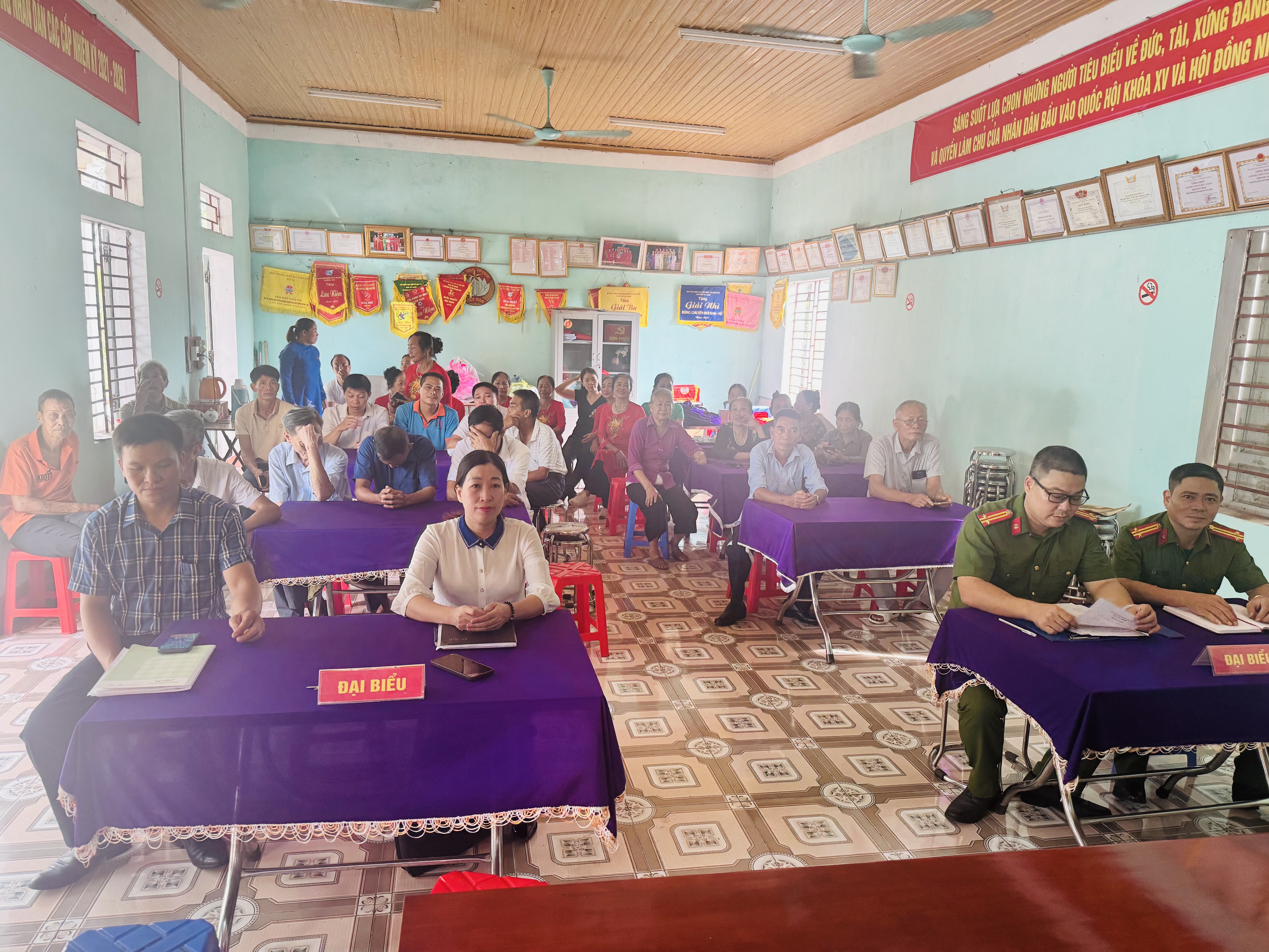 Đ/c Trung tá Nguyễn Thanh Liêm, Phó Trưởng công an xã phát biểu và tuyên truyền tới Nhân dân