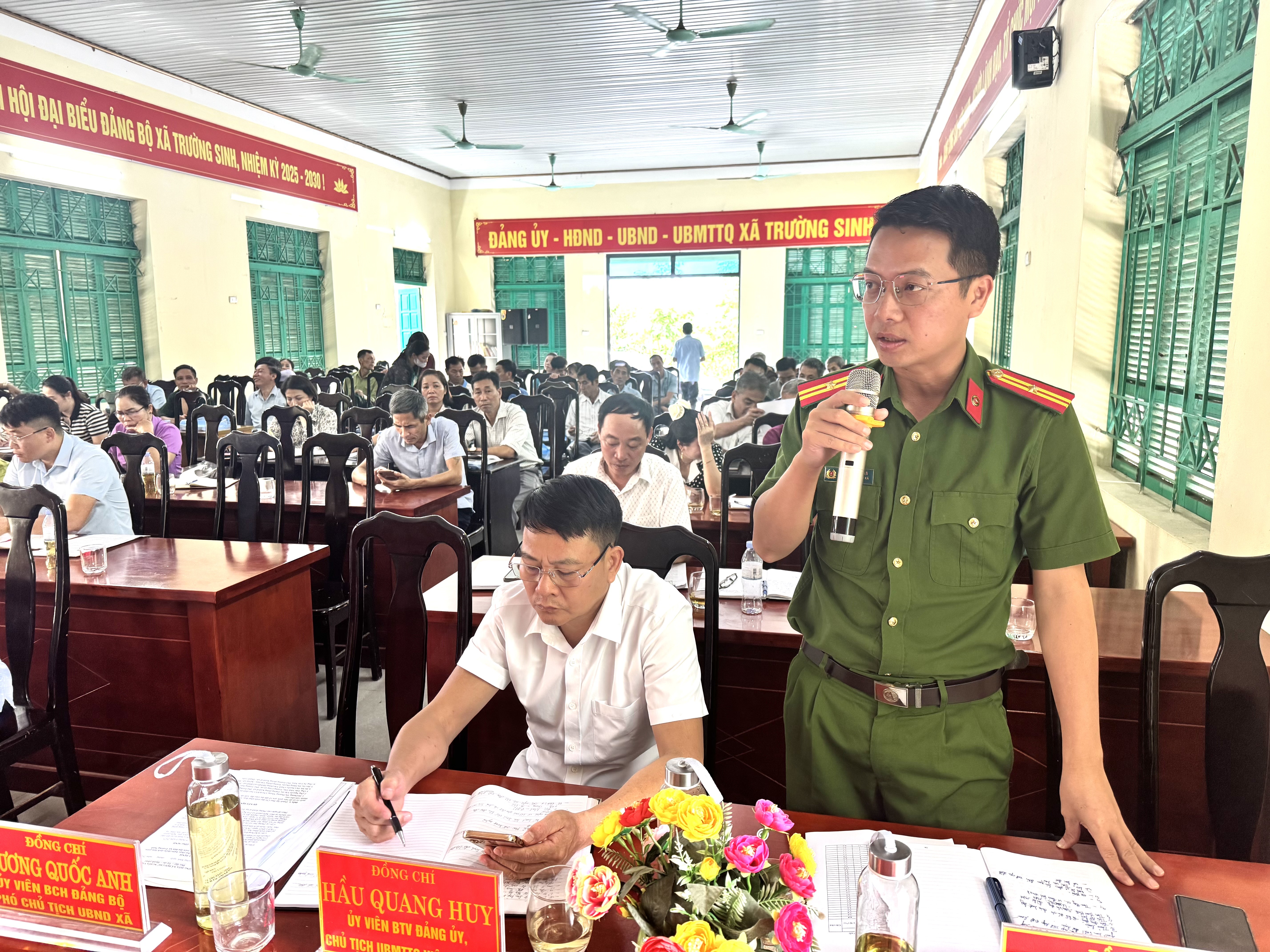 Dự và chỉ đạo Hội nghị có Đ/c Dương Thị Phương Nhung, Phó Bí thư Đảng ủy, Chủ tịch UBND xã, cùng các đồng chí trong BTV Đảng ủy xã; Trưởng, Phó các Phòng, ban chuyên môn, cán bộ công chức xã, các cơ quan, đơn vị, Trưởng các thôn trên địa bàn xã.