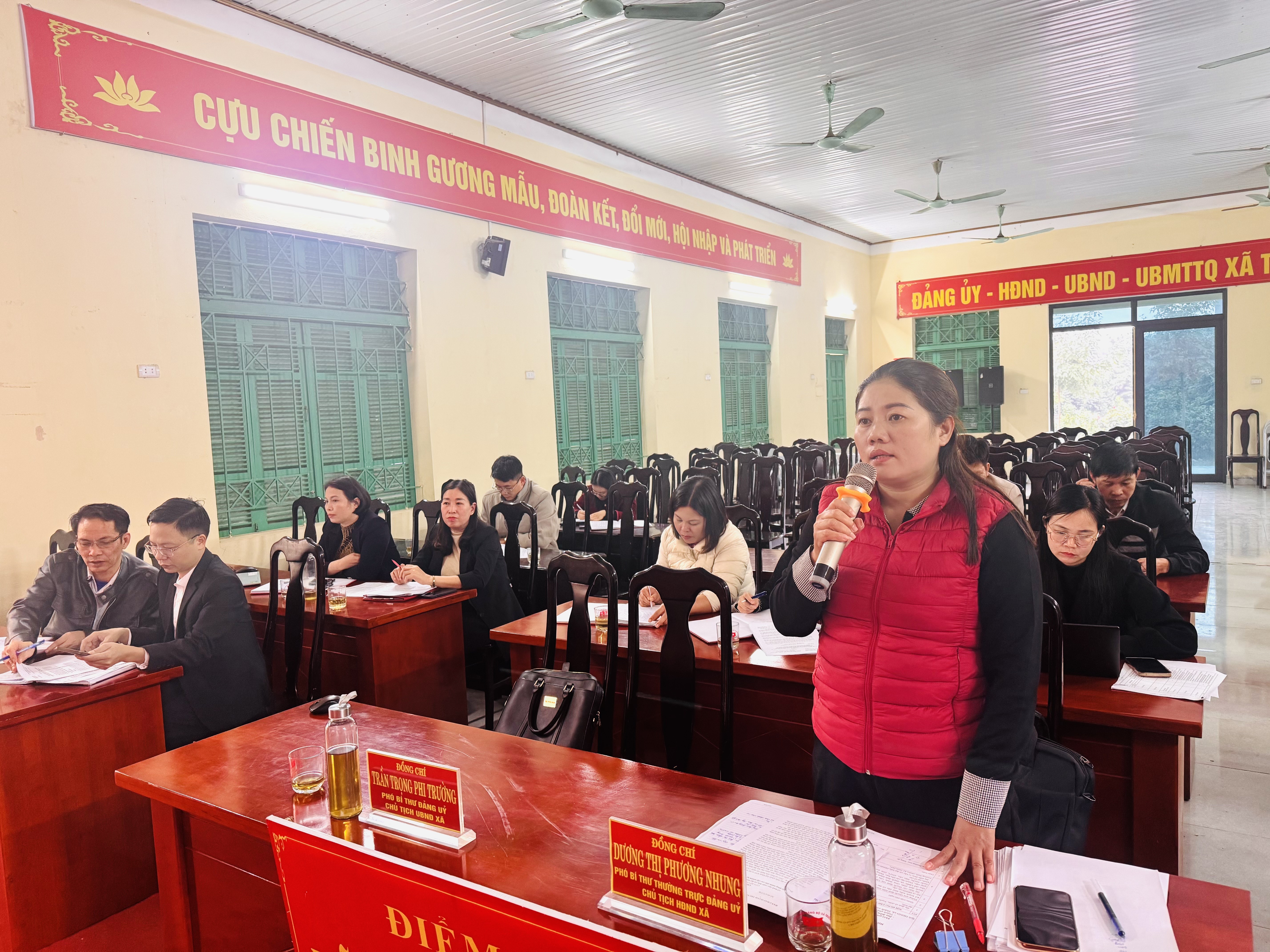 Đồng chí: Dương Thị Phương Nhung, Phó Bí thư Thường trực Đảng ủy, Chủ tịch HĐND xã phát biểu chỉ đạo tại Hội nghị