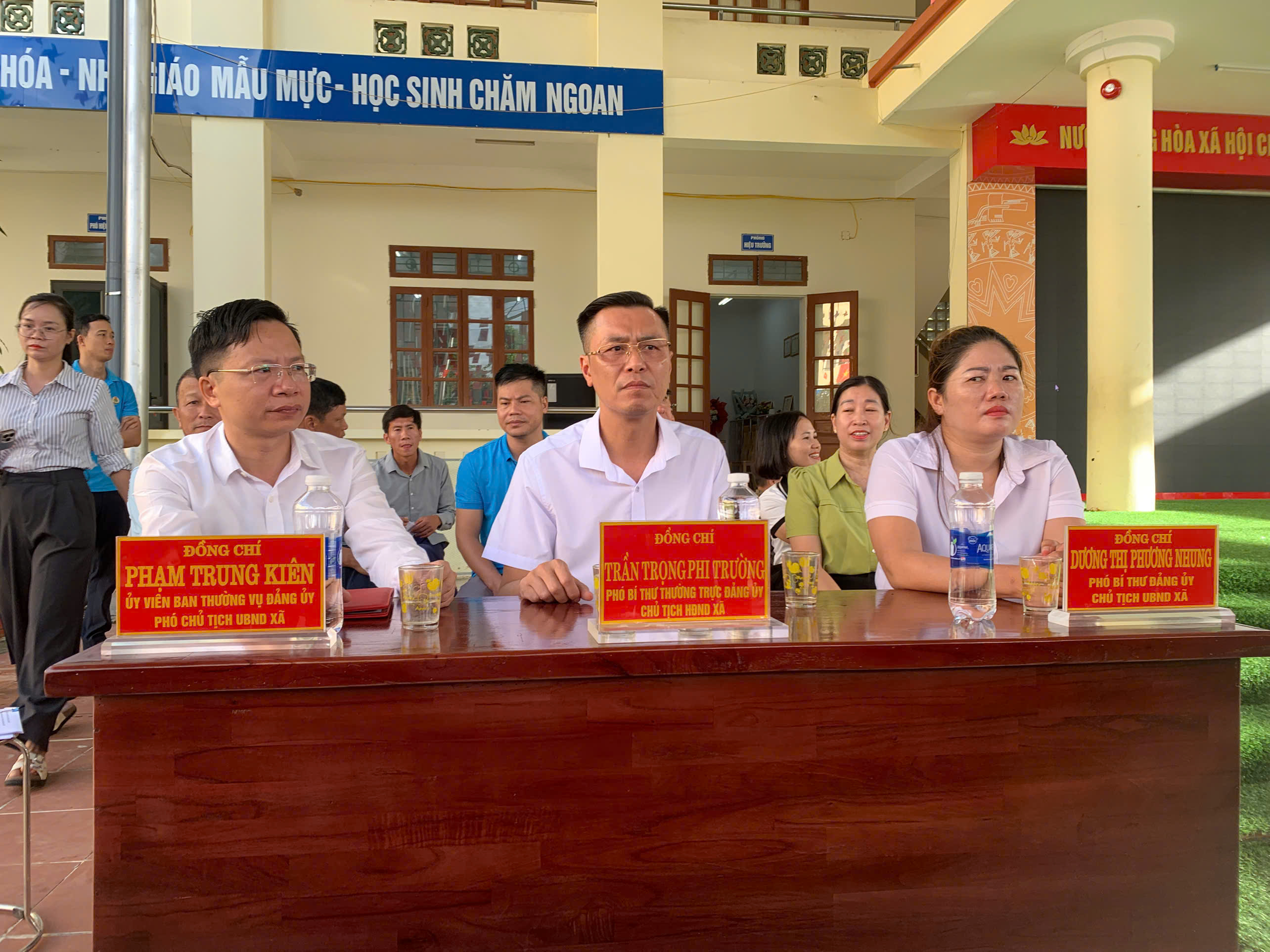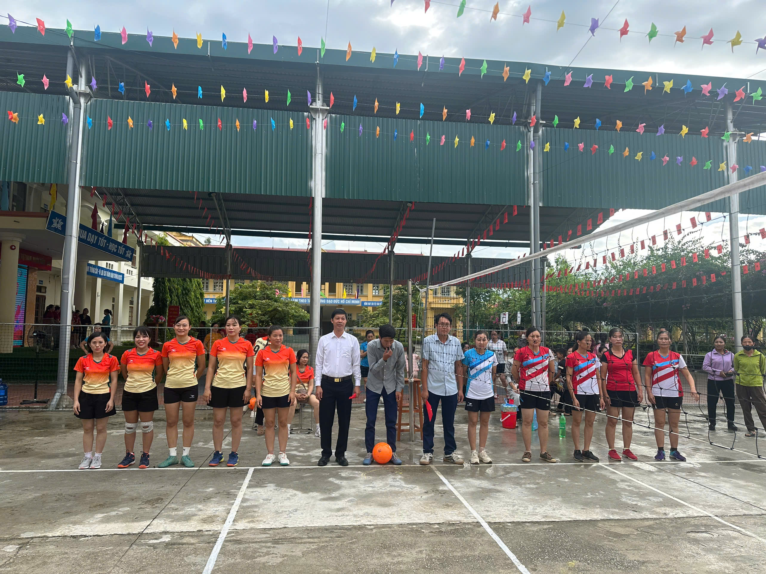 Đ/c Trần Trọng Phi Trường, Phó Bí thư Đảng ủy, Chủ tịch HĐND xã, Đ/c Dương Thị Phương Nhung, Phó Bí thư Đảng ủy, Chủ tịch UBND xã, Đ/c Phạm Trung Kiên, Ủy viên BTV Đảng Ủy, Phó Chủ tịch UBND xã và các Đ/c trong Ban chỉ đạo giải bóng chuyền hơi tới dự và cổ vũ các đội